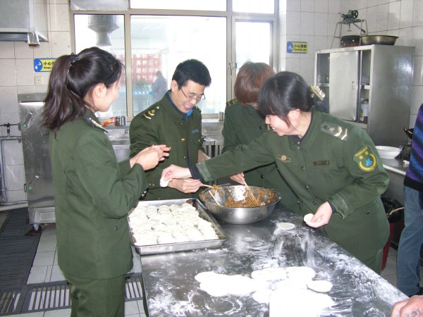 這天,食堂的師傅早早就準備好了包餃子的材料,十多名職工一起幫忙包餃子。大家圍在一起各顯身手,揉面,搟皮,包餃子,雖然有的同志手法略顯生疏,但是干得卻是十分帶勁,一絲不茍。大家邊包餃子邊交談,歡樂的笑聲不時傳來,就像一家人一樣其樂融融。熱騰騰的餃子出鍋了,大家圍座在一起津津有味地吃著自己包的餃子,不但驅(qū)走了冬日的嚴寒,心里更是有種別樣的溫暖。