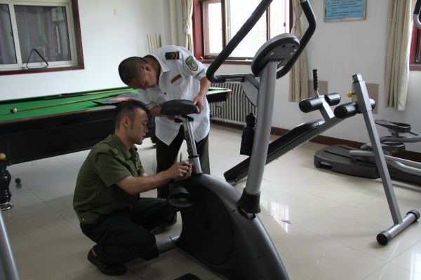 6月17日,;劬⒗顪Y兩名同志發(fā)現(xiàn)健身房部分健身設(shè)施出現(xiàn)螺絲松動現(xiàn)象,便自發(fā)找來維修工具對設(shè)施進行維修保養(yǎng)。兩人邊摸索邊修理,將因螺絲松動而不能使用的健身自行車重新修好,隨后又對其他健身器材進行加固保養(yǎng),保證了設(shè)施正常使用。