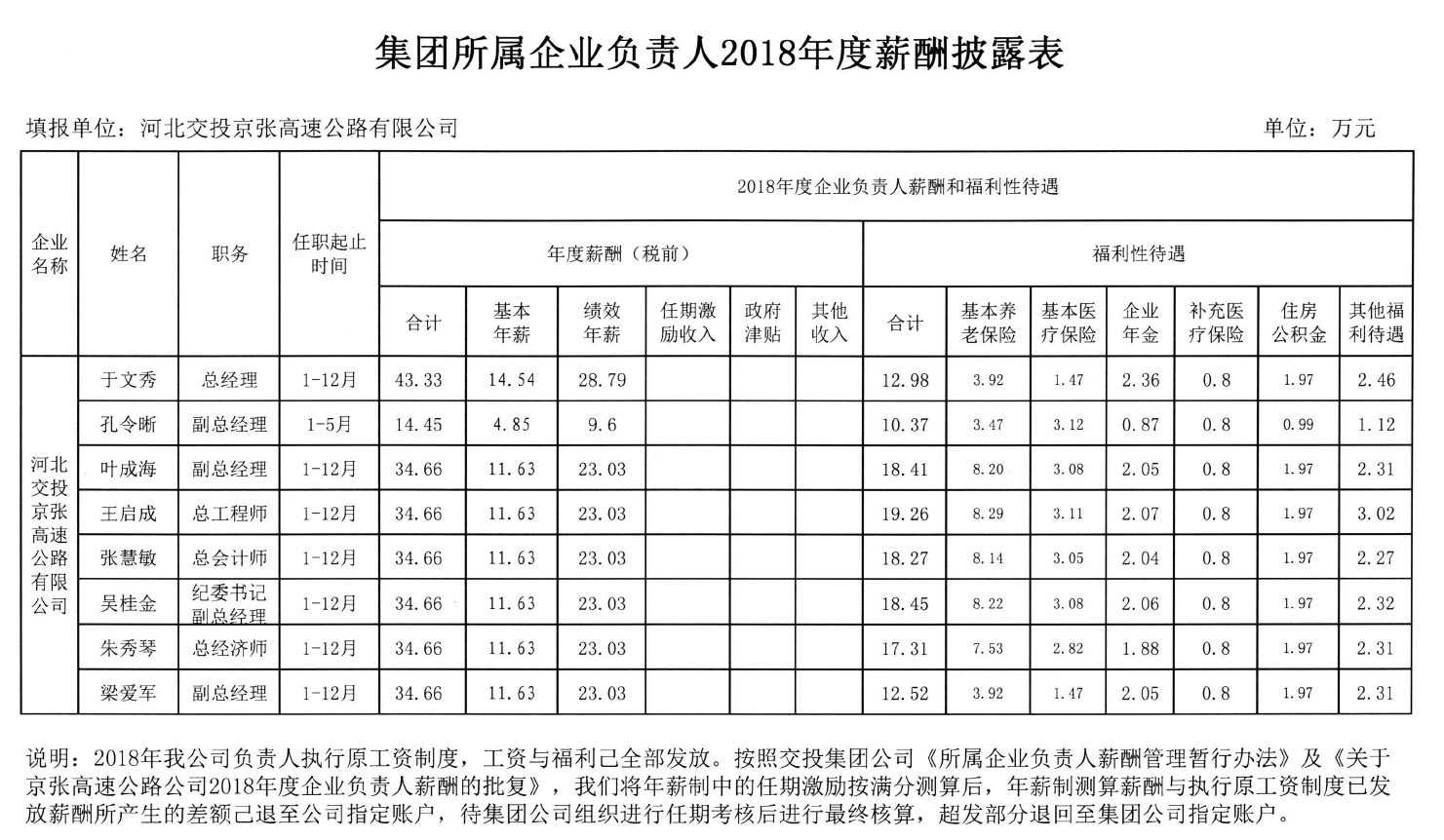 集團所屬企業(yè)負(fù)責(zé)人2018年度薪酬披露表